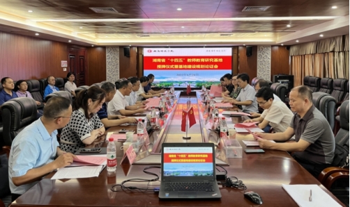 6月24日上午,湖南省“十四五”教师教育研究基地授牌仪式暨基地建设规划论证会在东校区办公楼二会议室举行。省教育科学规划办常务副主任、省教育科学研究院教育规划所所长黄龙威为基地授牌,校长、基地主任皮修平教授,基地首席专家、教育科学学院吴云鹏教授接牌。副校长聂东明、刘俊学出席仪式。
