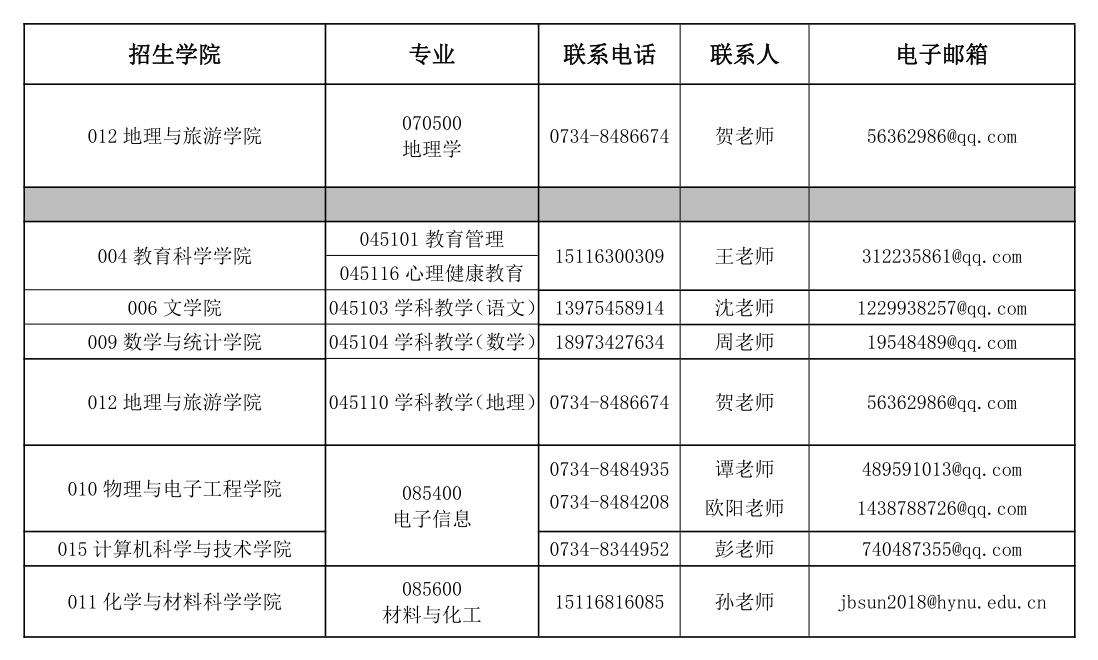衡阳金年会2022年硕士研究生招生各二级学院联系方式
