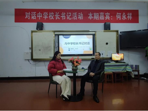 2022年12月1日下午,衡阳金年会教育科学学院与资兴市立中学在资兴市立中学图书馆二楼团体辅导室成功举办了“对话中学校长书记活动”。本次对话的嘉宾是郴州市教育学会常务理事、衡阳金年会客座教授、资兴市立中学党总支书记何永祥,衡阳金年会心理健康教育硕士生王星畅主持了此次活动。资兴市心育名师工作室首席专家、资兴市立中学学生发展中心主任袁芳荷,资兴市立中学青年教师代表,衡阳金年会2021级心理健康教育专业资兴市中学实习生线下参加、其他教育硕士近60人在线上参加。