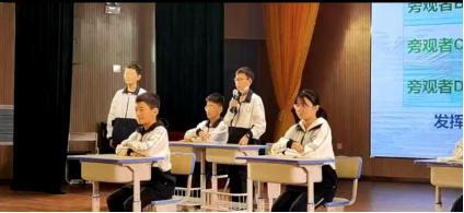 最后,是高新成章实验学校冯子豪老师的班会课《让少年的你远离校园欺凌》。冯老师通过让学生进行角色扮演、修改剧本这种直观的方式,切身体会校园暴力给孩子带来的伤害,倡导学生要远离校园欺凌,学会在校园欺凌中保护自己。同时也让在座的各位研究生同学明白了作为老师要关心学生关爱学生,做学生的“避风港”。
