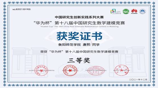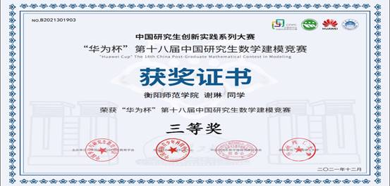 数学与统计学院研究生在2021年国家与省级竞赛中获奖5项