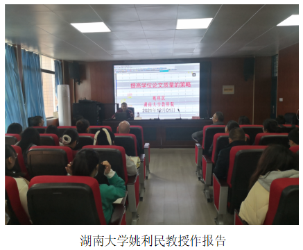 第二阶段,姚教授作《提高学位论文质量的策略》的学术报告。姚教授结合自身20多年来指导研究生的教学实践经验,以学位论文为主题,从学位论文的标准、结构、要求、内容要求、学术不端检测、质量与提高等六个方面阐述了如何提高论文质量。报告过程中,姚教授从“问题导向”的概念出发,指出论文写作过程中,要紧紧围绕研究的问题展开论述,要有连贯性、逻辑性。接着,姚教授结合专业学位硕士研究生的培养应用型人才目标要求,指出研究生应当结合社会发展方向,从实际的教育现象中进行选题,创造出兼备学术性、价值性与实践性的研究成果。同时针对当前存在的论文抄袭等学术不端的问题,姚教授强调研究生要秉承诚信原则,尊重他人的学术成果,杜绝抄袭行为。最后,姚教授表示,同学们要将报告中分享的策略牢记于心,应用到论文写作过程中,避免问题的产生,提高论文质量,写出一篇优秀的论文。